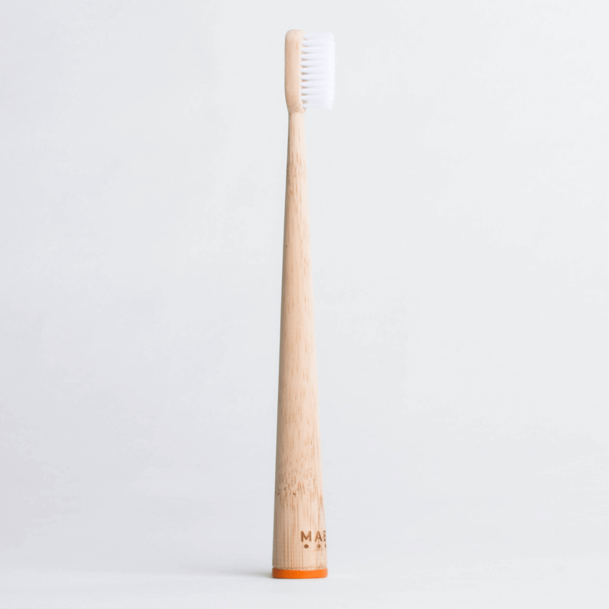 Choose a healthier option for you and the Earth with our Orange-Accented Adult Bamboo Toothbrush! This self-standing brush, made from non-toxic materials, is both stylish and sustainable.