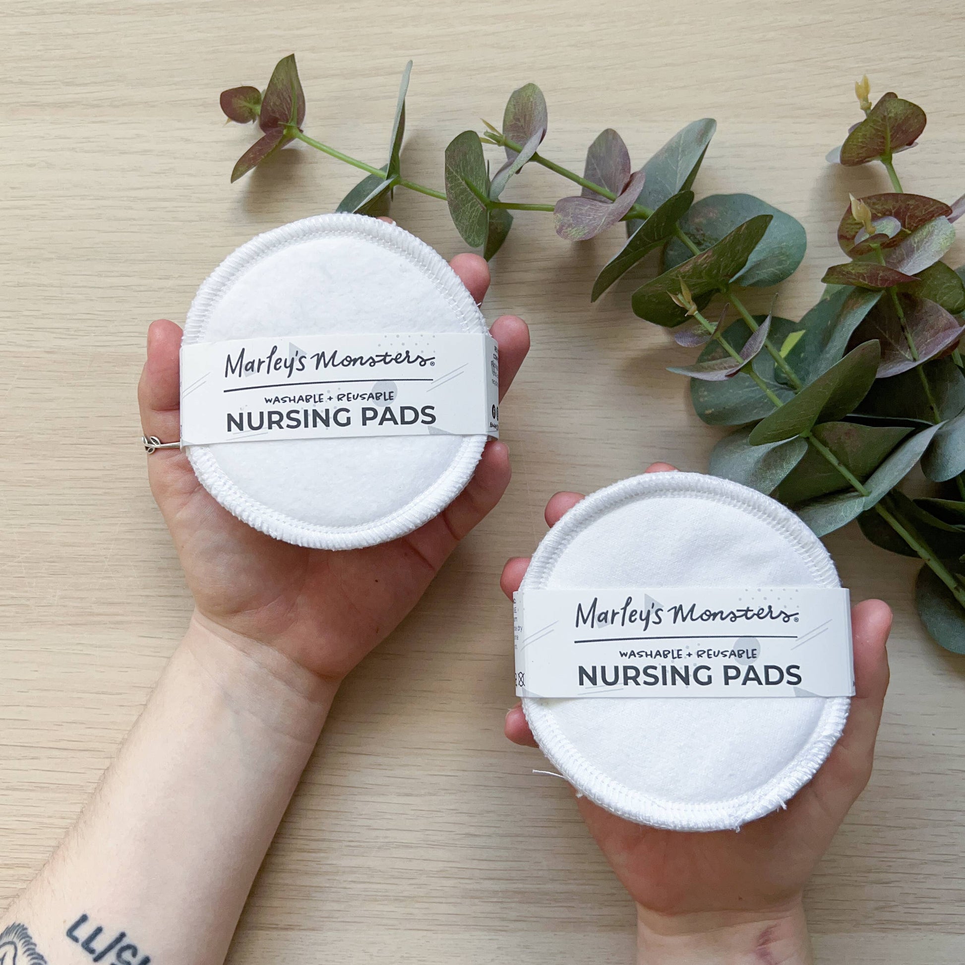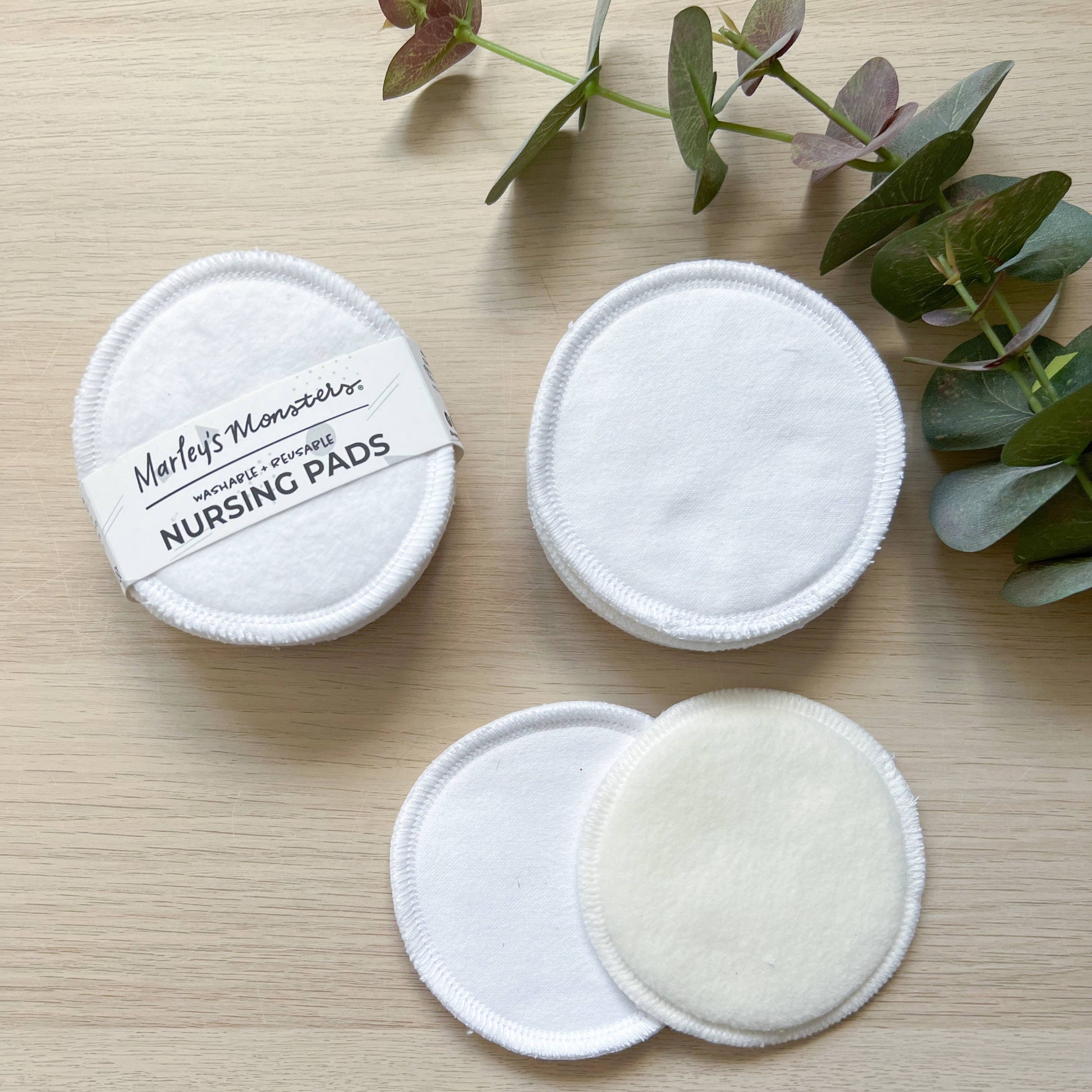 Our nursing pads are made with 4 layers of protection including flannel, cotton terry cloth and anti-pill fleece. The fleece goes against your clothes to create a barrier between the absorbent cotton and your clothes. These pads are very absorbent without creating excess bulk and naturally form to the shape of your breast after washed and dried. They are 4" in diameter. Absorbency is increased after the first few washes.